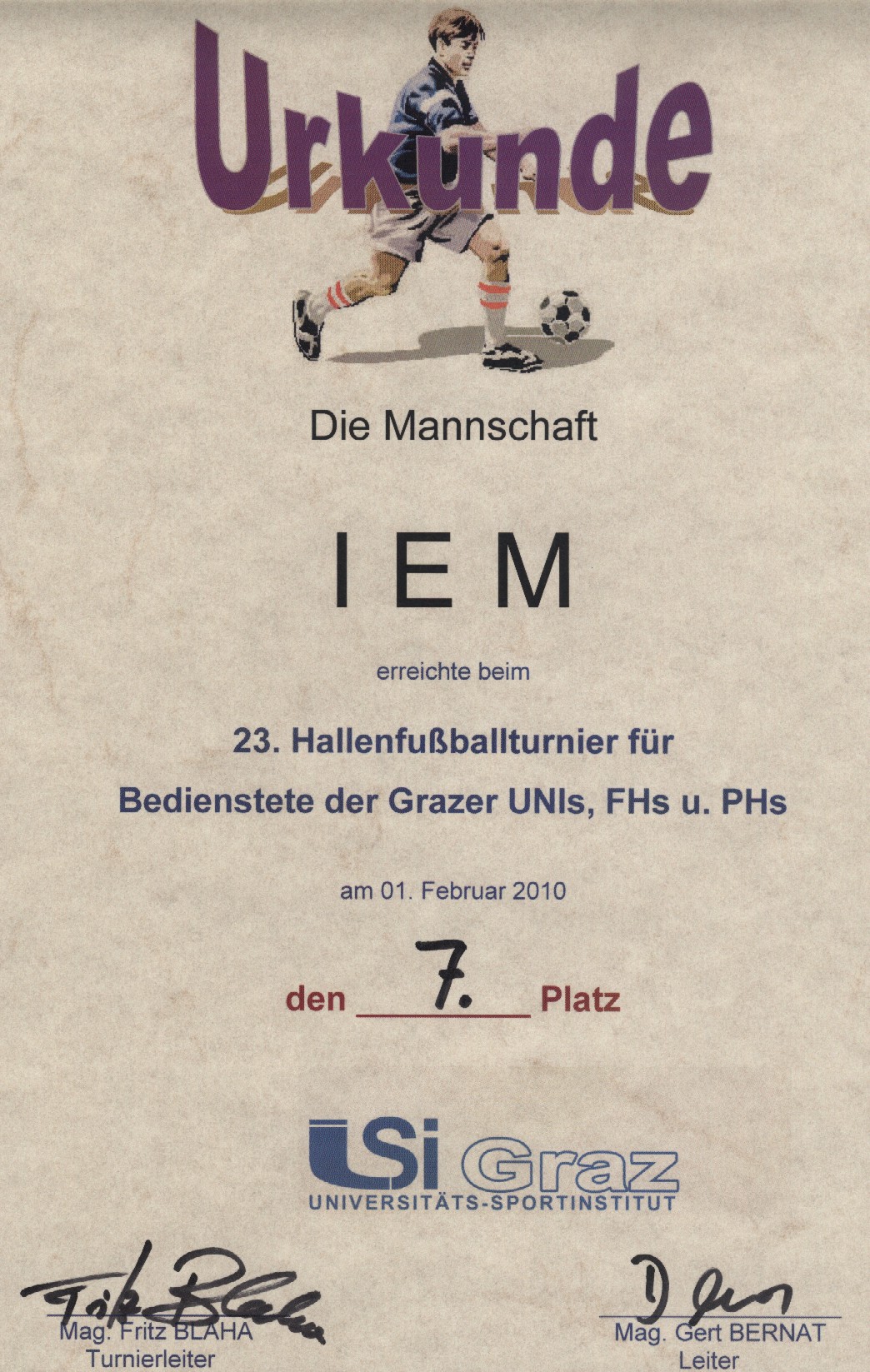 Hallenfußballturnier mit Frank, Guldenschuh, Pirrò, Pomberger, Ritsch, Sontacchi, Zotter (Legionäre Deboy, Dietze)