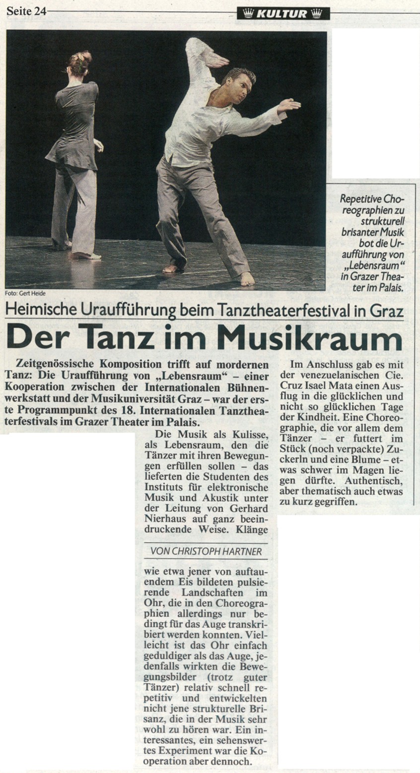 Als eine Kooperation zwischen der internationalen Bühnenwerkstatt und der Musikuniversität Graz entstand ein spartenübergreifendes Projekt zwischen Tanzperformance und zeitgenössischer Komposition.