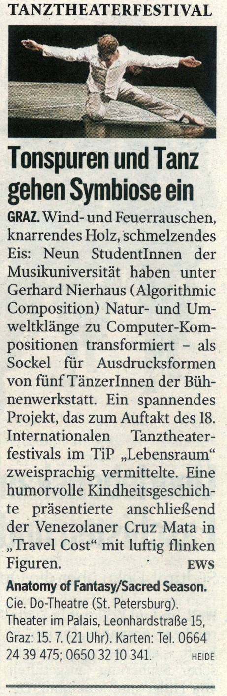 Als eine Kooperation zwischen der internationalen Bühnenwerkstatt und der Musikuniversität Graz entstand ein spartenübergreifendes Projekt zwischen Tanzperformance und zeitgenössischer Komposition.