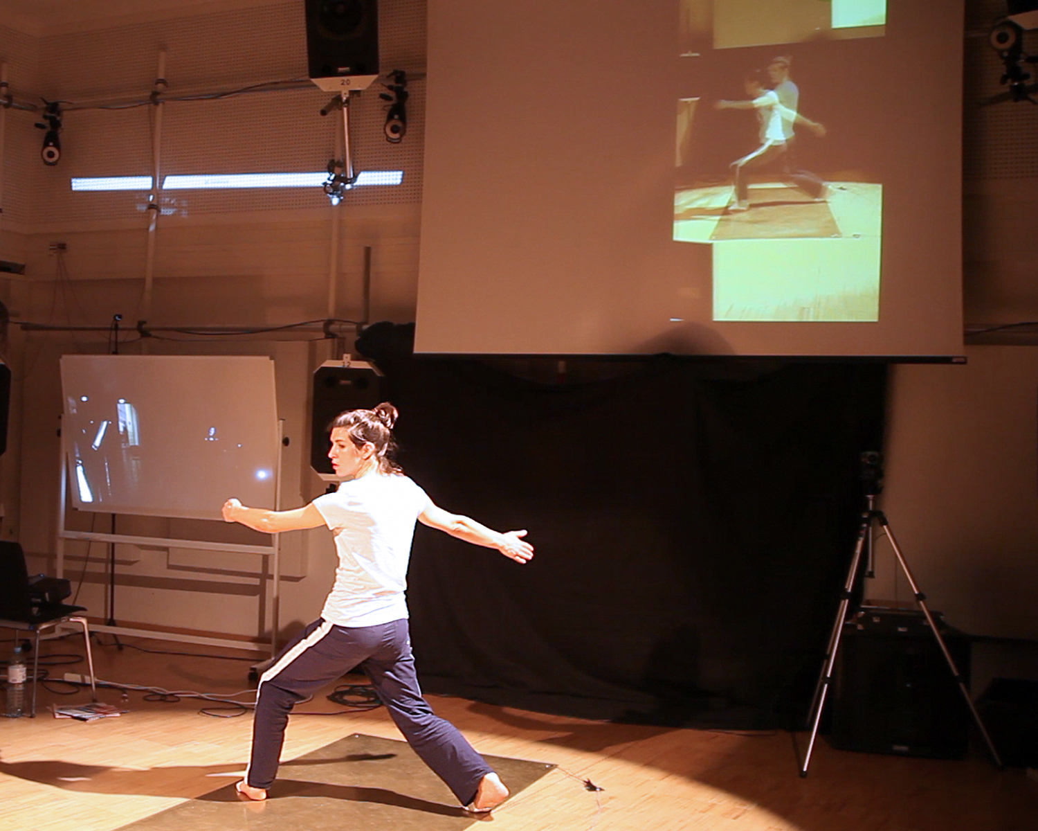 Dabei werden die zwei Konzertsäale, das Teater im Palais an der Kunstuniversität Graz mit dem "Espace du projection" am IRCAM audiovisuell über den European Gigabit-Backbone zu einen verschmolzen, wobei Publikum und Performer sich gegenüber stehen.